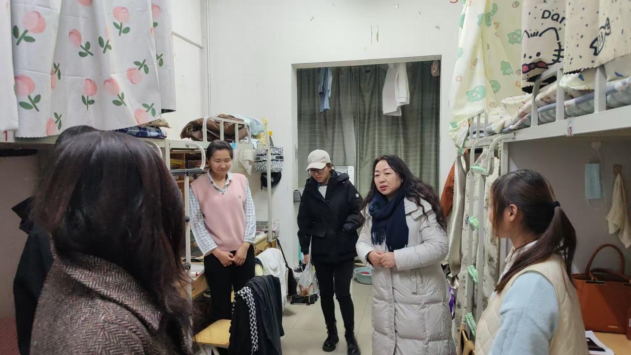 随后,在走访学生宿舍过程中,学院领导详细查看了学生的住宿环境,仔细询问了同学们的生活起居、宿舍安全、卫生状况以及日常作息等。他们与同学们亲切交谈,关心大家是否适应学校环境,住宿中是否存在设施维修、用水用电等具体困难,并叮嘱同学们要互相关心、互相帮助,共同营造安全、整洁、文明、和谐的宿舍氛围。